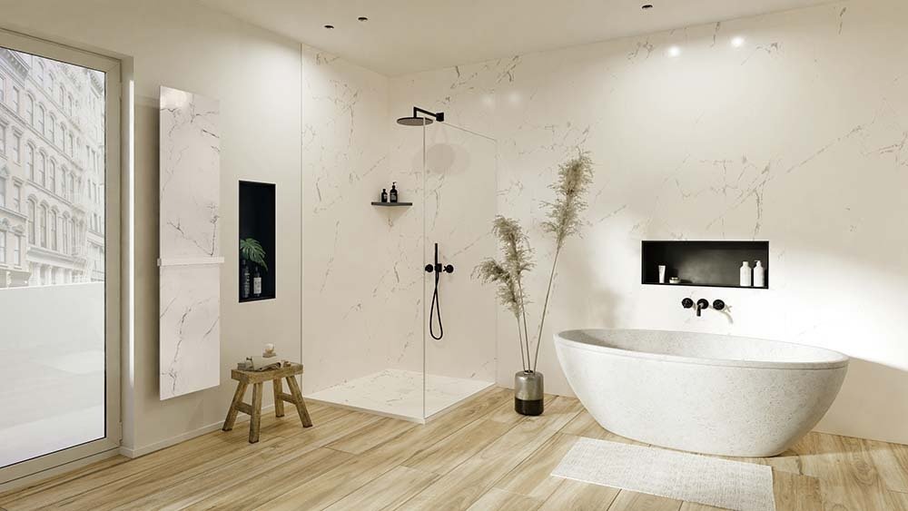 Ces receveurs de douches allient modernité, et esthétique. Ce modèle en résine imitation marbre épouse la tendance des salles de bain contemporaines et apporte de la discrétion et de la modernité.