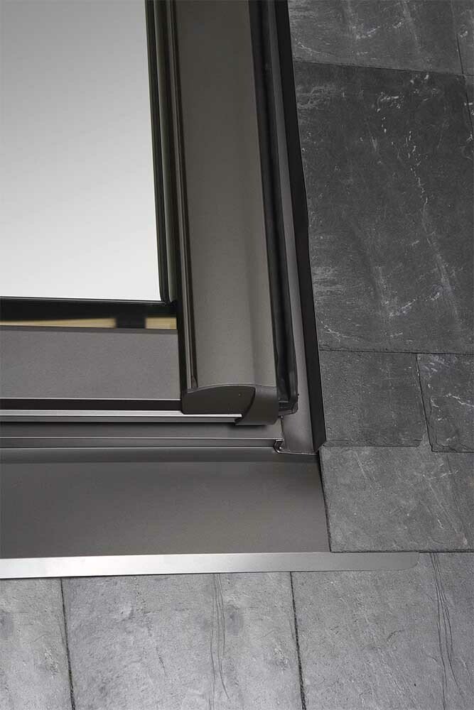 Raccord pour fenêtre ROTO Designo sur ardoise, tuile plate à couloir latéral continu et bardeau