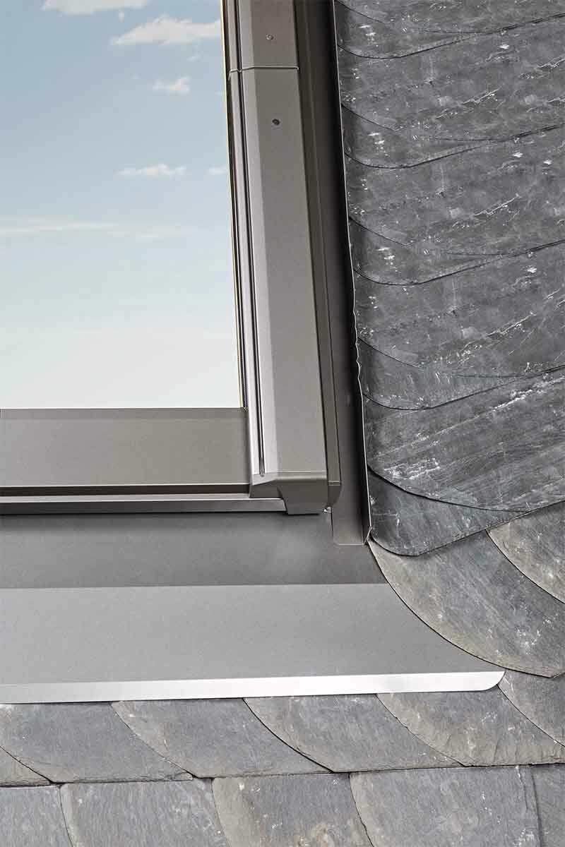 Raccord pour fenêtre ROTO Q avec bloc isolant, sur ardoise, tuile plate jusqu'à 3.5 cm, élements latéraux continus