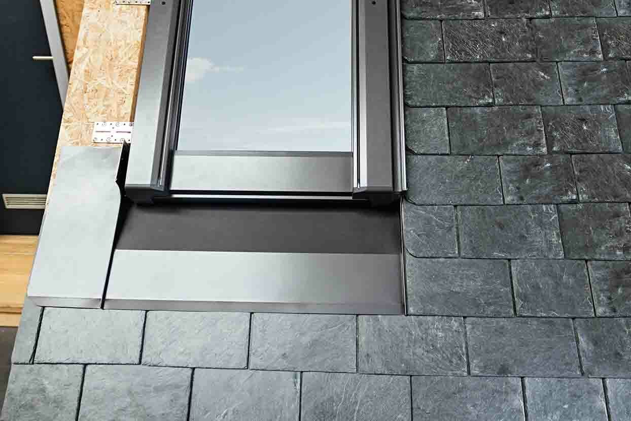 Raccord d'étanchéité pour fenêtre ROTO Q sans bloc isolant, pour installation sur ardoise avec noquets, ou matériau plat jusqu'à 1.6 cm ( 2 x 0.8 cm). Pose encastrée. Pose encastrée d'environ 4 cm par rapport à une pose normale.