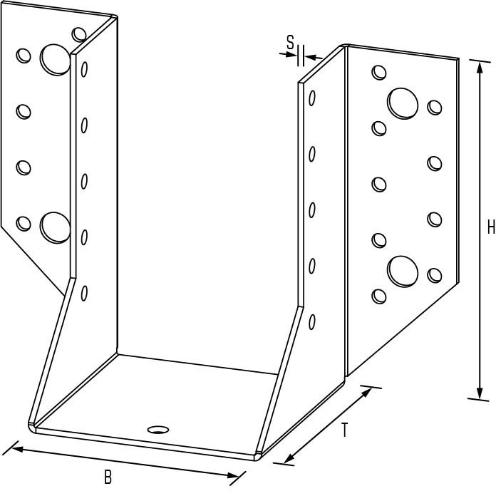 Les sabot peuvent être entièrement cloués ou fixés par clouage partiel. Pour la fixation à de l'acier, de la maçonnerie ou du béton, ils comportent des trous supplémentaires pour le montage avec des boulons, des goujons T, des vis d'ancrage à béton ou de scellement chimique.