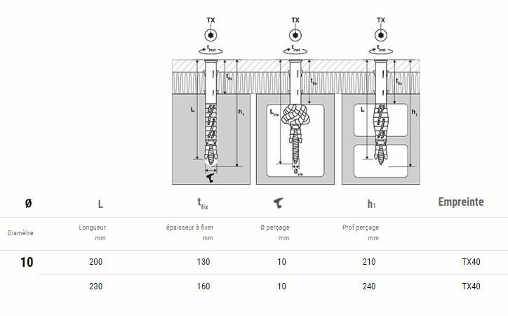Cheville nylon + vis tête fraisée acier zingué 10 mm x 120 mm
