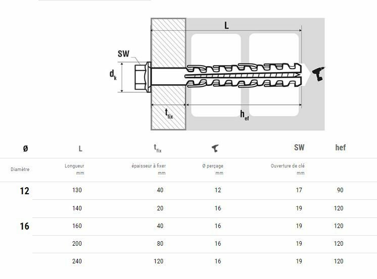 Cheville conçue pour une expansion dans la deuxième alvéole du parpaing : ancrage sûr en profondeur.