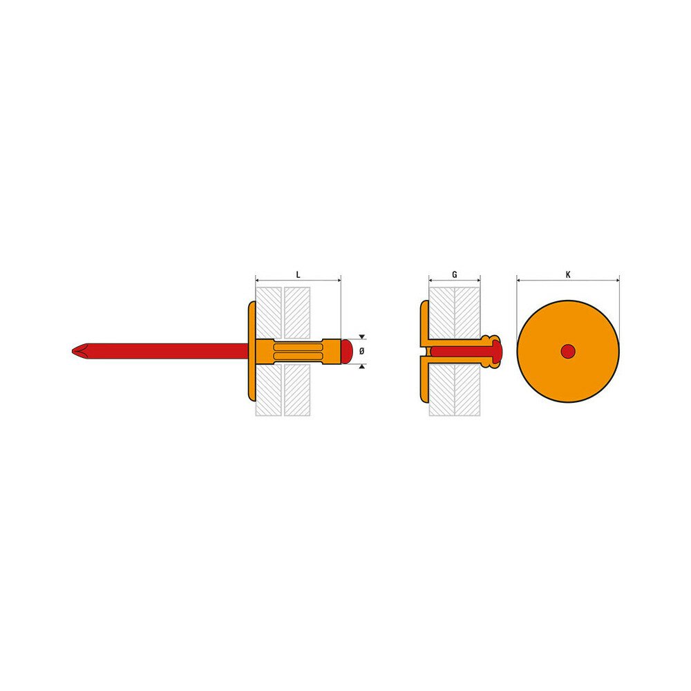 La tête plus large que le rivet standard offre une surface de contact plus importante.