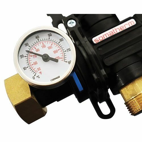 -Raccordement au réseau principal par vanne à boisseau sphérique en 1" avec thermomètre de précision. (kit Vanne Droite MF 1" Inclus)