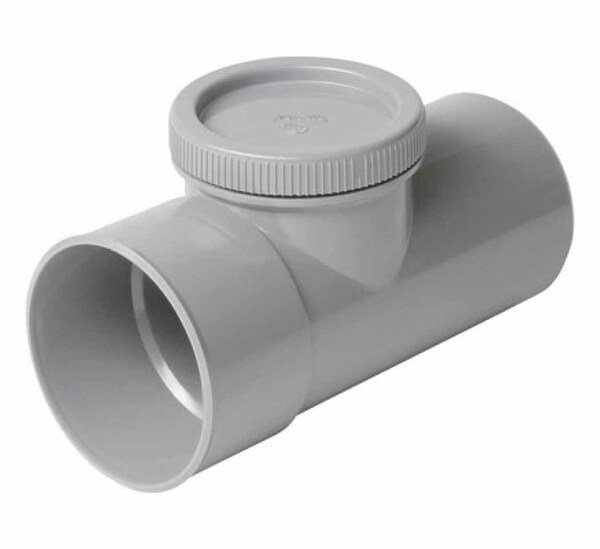 Té de visite PVC pour réalisation de réseaux d'évacuation des eaux usées en PVC gris.