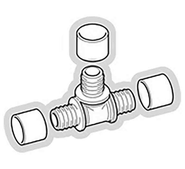 Té égal pour réalisation des jonctions de tube PER/PEX.