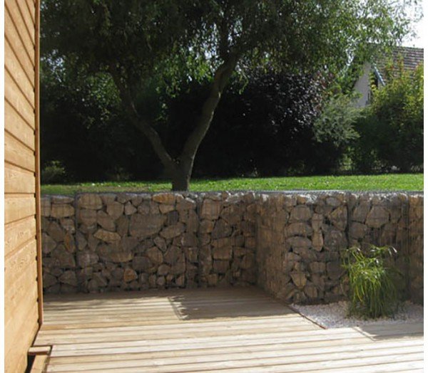 Gabions en fils acier soudés de 4.5 mm sur les faces visibles et 4 mm sur la face invisible.