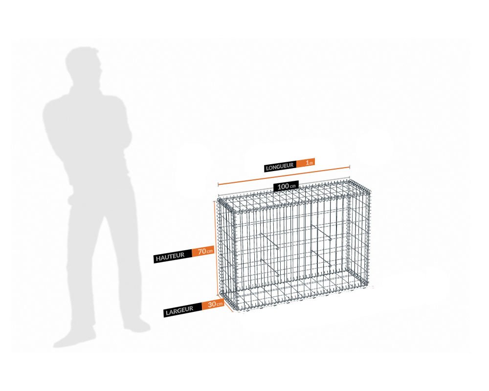 Gabions en fils acier soudés de 4.5 mm sur les faces visibles et 4 mm sur la face invisible.