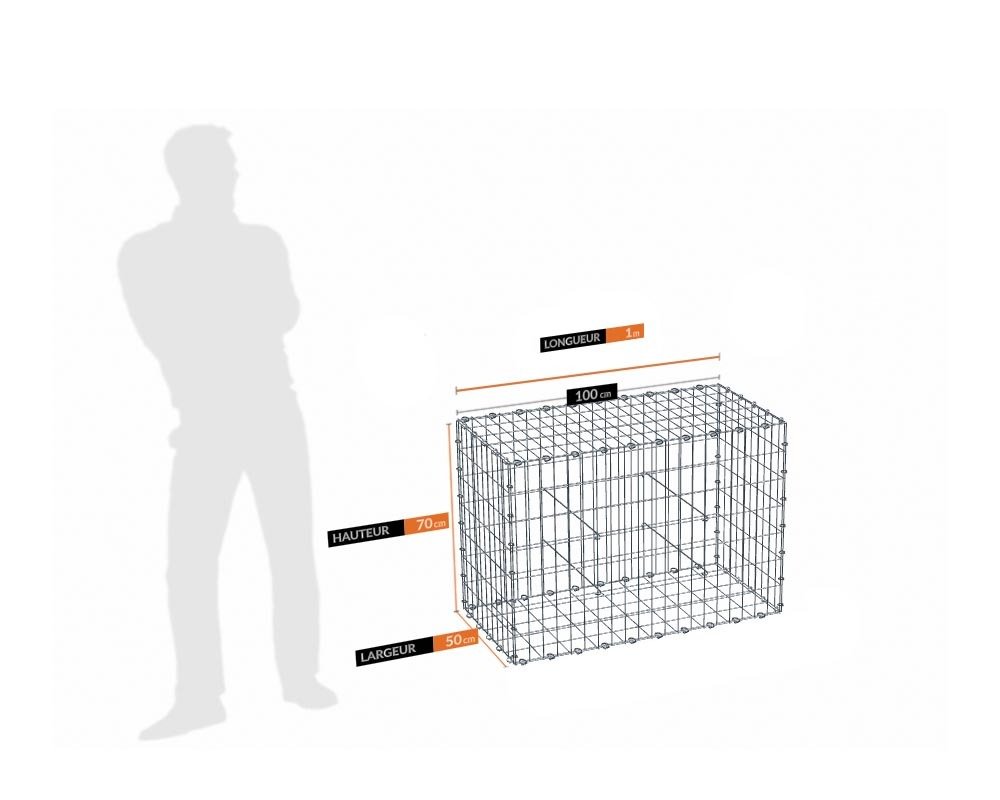 Gabions en fils acier soudés de 4.5 mm sur les faces visibles et 4 mm sur la face invisible.