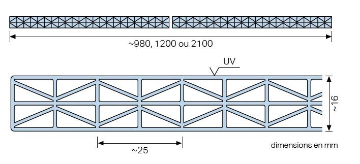 Plaque polycarbonate alvéolaire épaisseur 16 mm, 1200 mm x 3500 mm