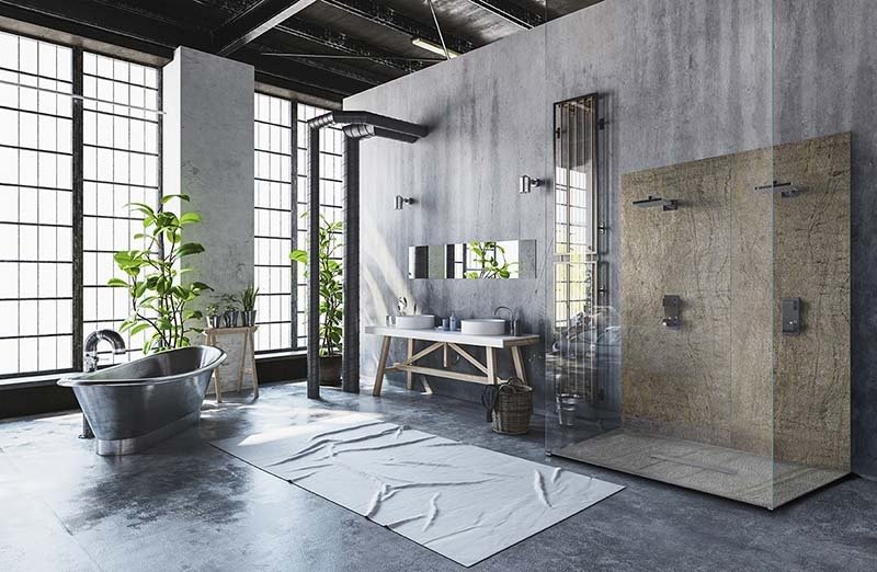 Panneau d'habillage mural pierre naturelle ardoise claire 250 x 30 cm x 3 mm d'épaisseur - fond de douche en pierre natuelle, livré avec natte étanche pré-montée