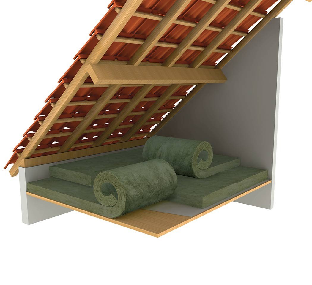 Isolation des combles perdus en 1ere couche déroulée au sol sur le plancher, ou en 2eme couche pour limiter les ponts thermiques:
