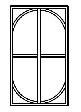 Verrière type atelier 2 vitrages clairs avec 4 arches et 2 traverses décoratives, chassis noir, largeur 71 cm