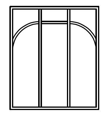 Verrière type atelier 3 vitrages clairs avec 2 arches et 1 traverses décoratives, chassis noir, largeur 105 cm
