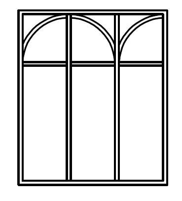 Verrière type atelier 3 vitrages clairs avec 3 arches et 3 traverses décoratives, chassis noir, largeur 105 cm